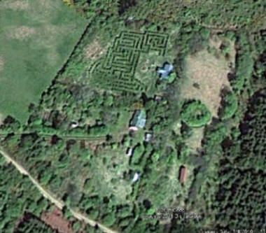 | Croagh Patrick on the horizon, zoomed | The maze on Google Earth | |||